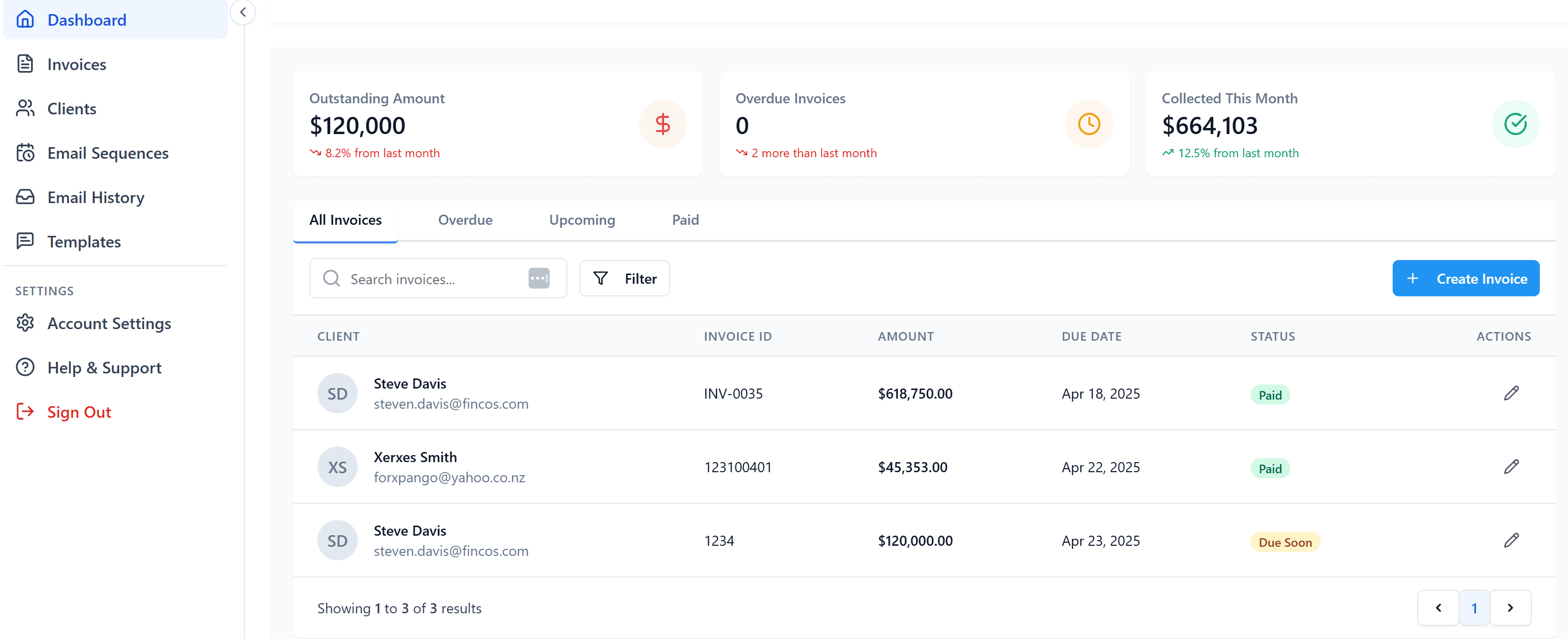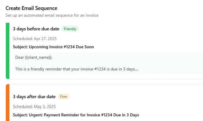 Invoice Chaser generates natural, psychologically-tuned payment sequences based on the client, relationship, and invoice data — helping you collect payments faster than standard reminders.
