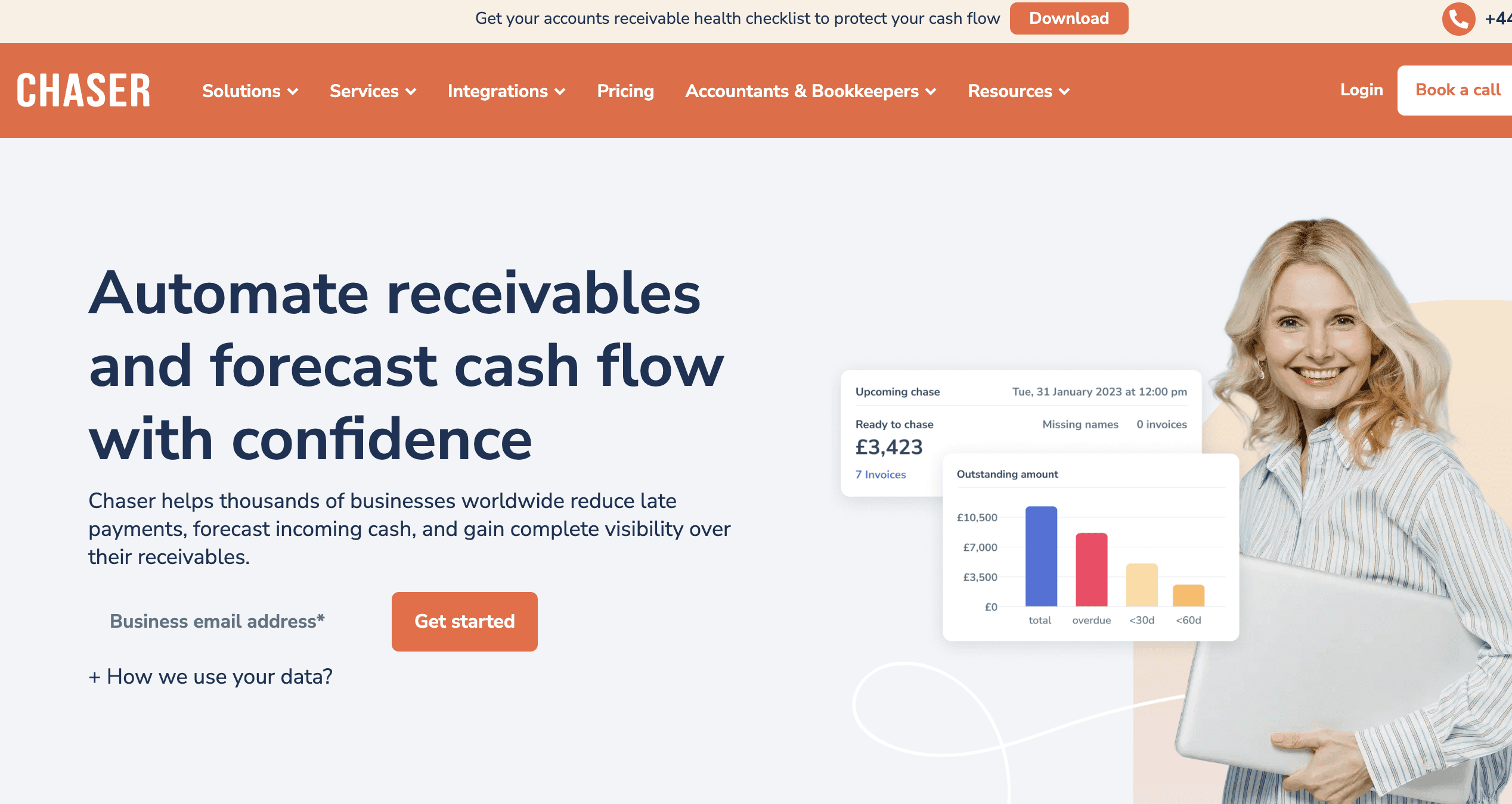 Chaser (chaserhq.com) is a heavy-hitting, UK-based accounts receivable platform. If you've outgrown InvoiceSherpa because you need multi-channel chasing—like SMS, physical letters, or automated phone calls—Chaser is a serious upgrade. It also includes credit checking and debt collection escalation. However, it's built for mid-market companies, not solo operators. While InvoiceSherpa starts at $41/month, Chaser's entry tier sits at $233/month, making it a significant jump in budget.